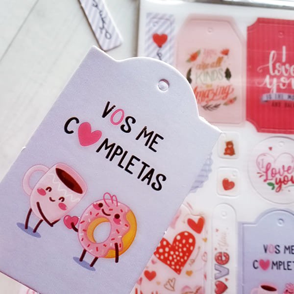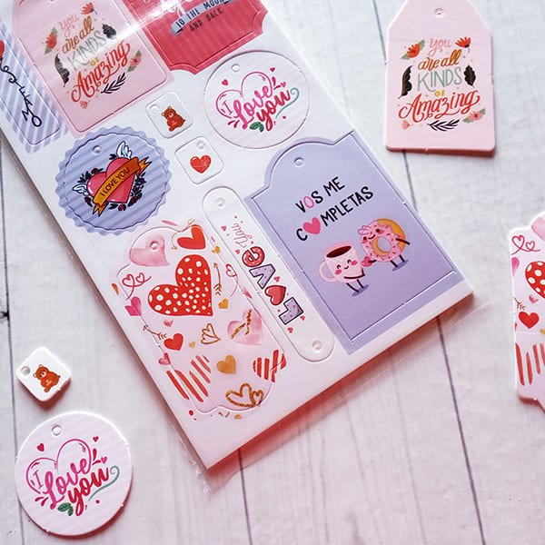 Cada pack contiene 3 laminas con 10 tags pre-troqueladas que permiten sacar y usar. Impresos en cartulina rÃgida.